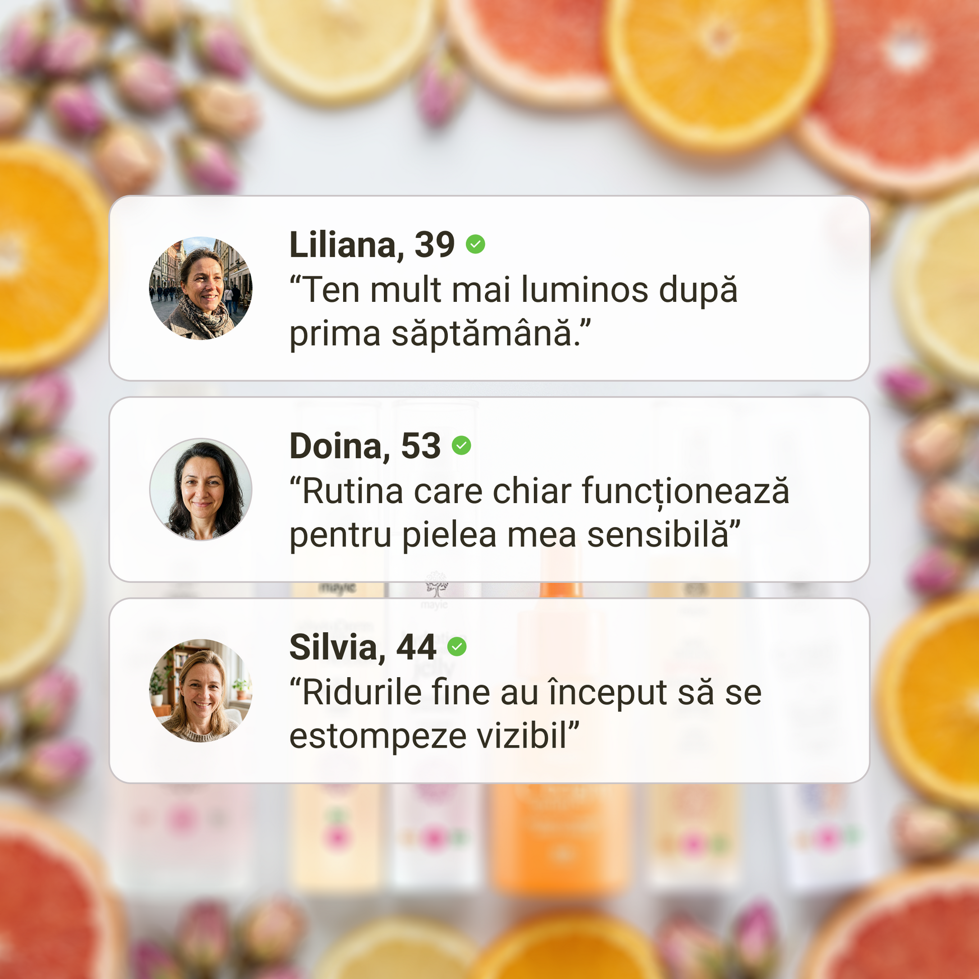 Simte puterea transformării și bucură-te de o piele sănătoasă, luminoasă și vizibil întinerită. Recâștigă încrederea în tine pas cu pas, alături de Mayie, în această călătorie captivantă către o versiune mai radiantă a ta.