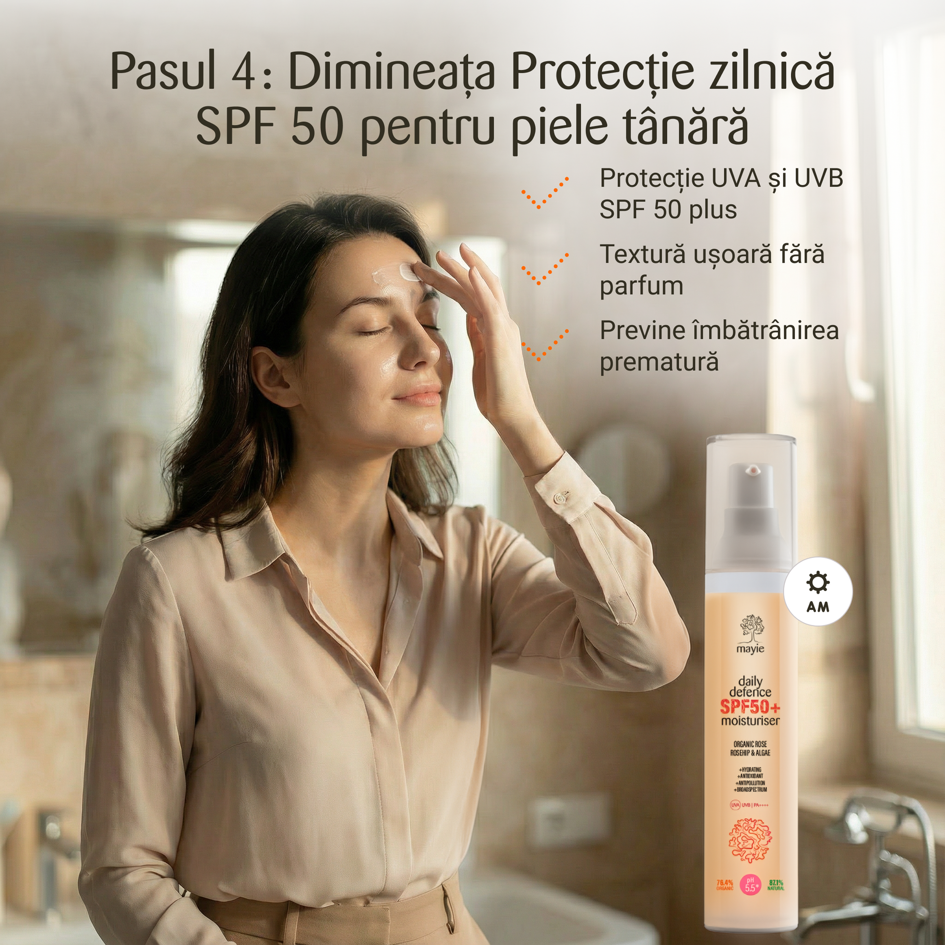 2. Eficiență dovedită: O soluție completă anti-aging, concepută cu formule inovatoare și ingrediente de top. Produsele Mayie oferă rezultate vizibile și o experiență de îngrijire la cel mai înalt nivel.